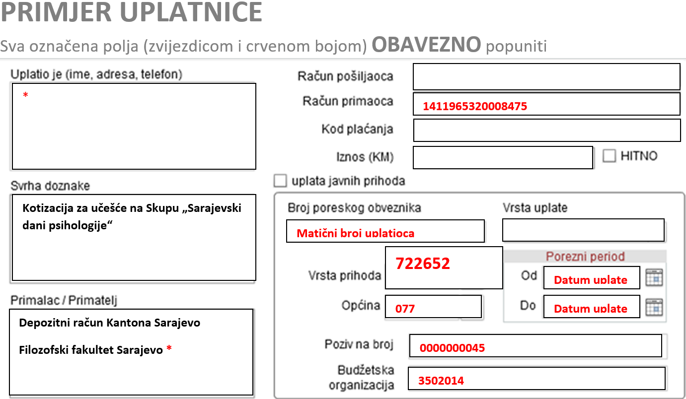 Prilikom uplate obavezno navesti slijedeće podatke: